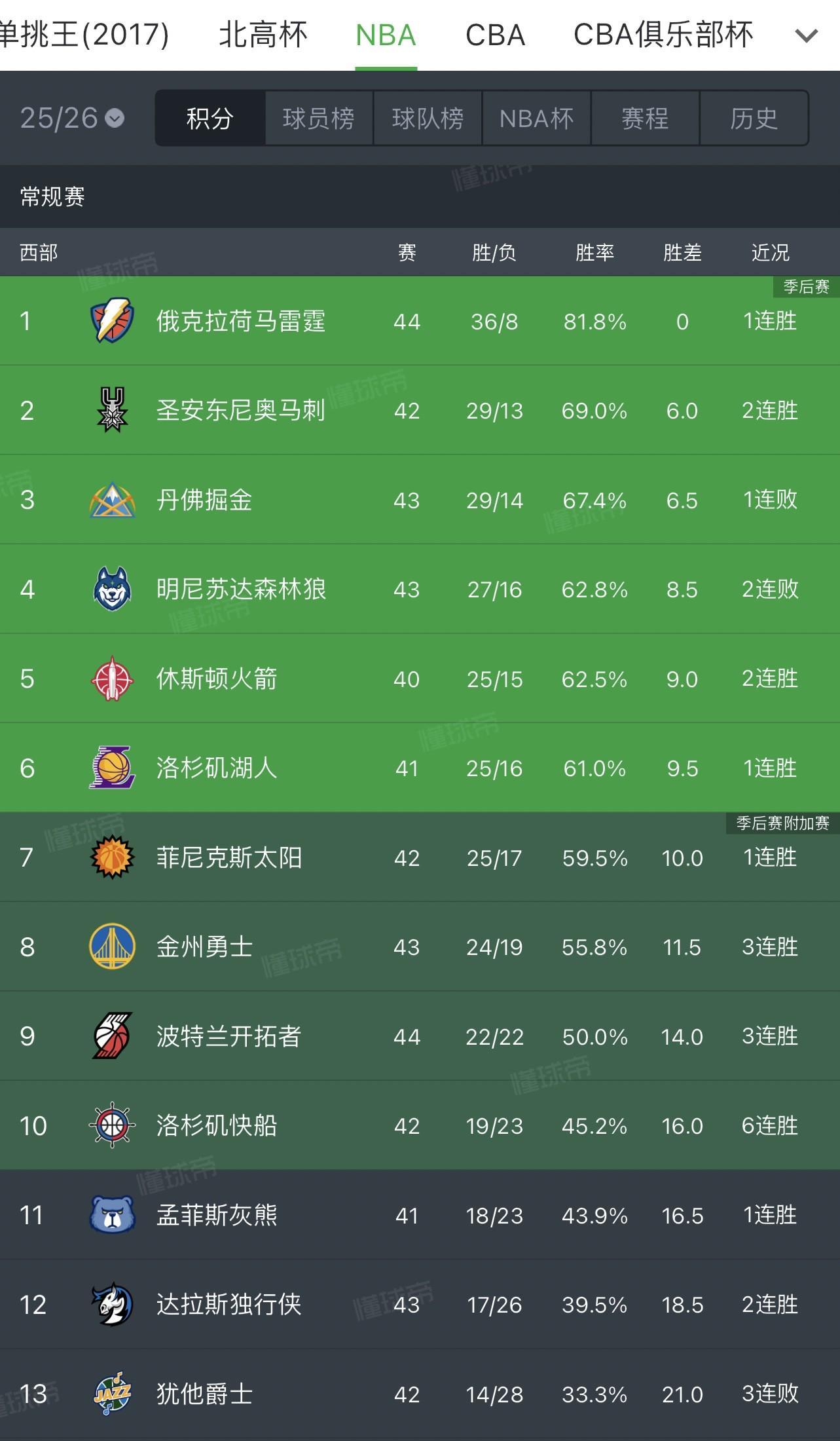 最终在这波连胜过后,快船终于从一度西部倒数第一的排名杀到了西部第十名,反超灰熊冲进了附加赛区。排在他们身前的的是开拓者队,目前开拓者领先快船2个胜场。